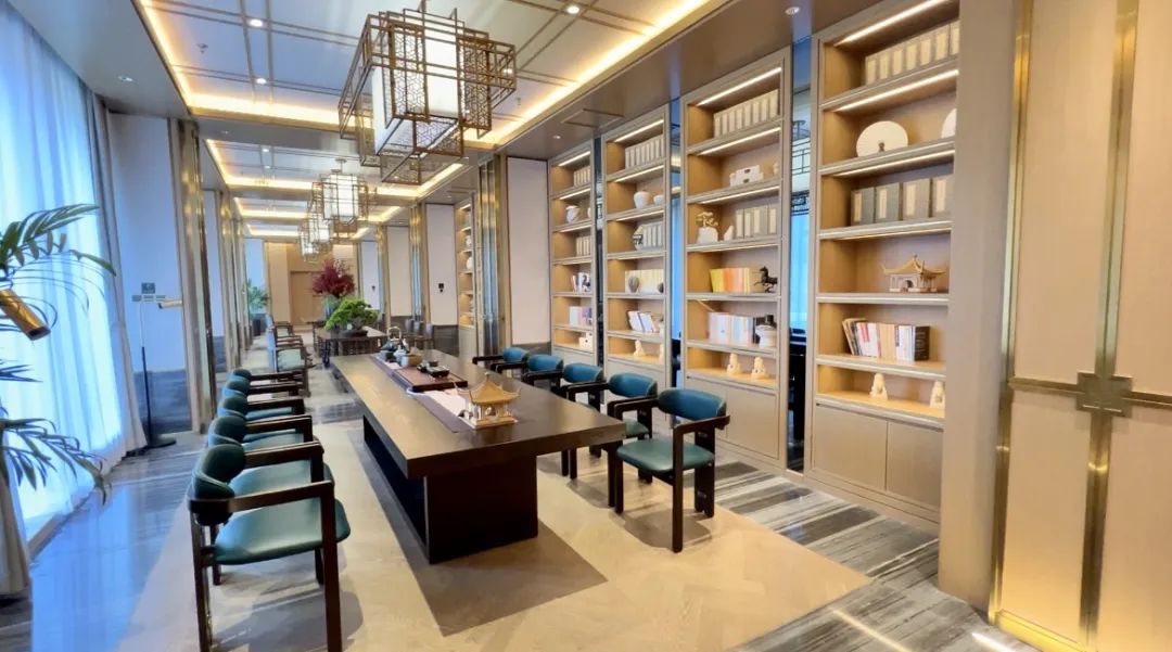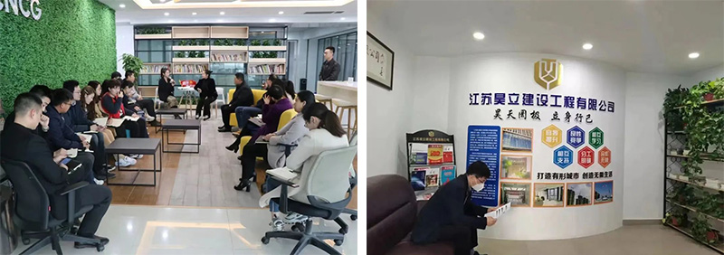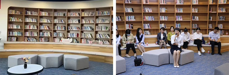 集團(tuán)以學(xué)習(xí)型企業(yè)建設(shè)為重點,在總部辦公區(qū)域?qū)iT劃分一塊讀書區(qū),常態(tài)化組織讀書分享活動?!读杭液印氛b讀分享、“我最愛的詩歌”閱讀分享、《一件旗袍的故事》展演.......豐富多彩的文化活動吸引著職工積極參與,使集團(tuán)氤氳濃濃書香。辦公空間的閱讀區(qū)除了閱讀功能,還是一個精心打造的多元空間——階梯座、沙發(fā)座以及長吧臺等相結(jié)合,將閱讀、休閑、交流巧妙融合在了一起。豐富的設(shè)計元素相疊加,不僅構(gòu)建了集團(tuán)企業(yè)文化的精神世界,也豐滿了空間組織和愉悅視覺,來讀書區(qū)小坐,翻一翻有趣的書籍,交流幾句心情,上班時緊張的神經(jīng)立刻舒緩了許多,疲憊的大腦仿佛被注入新的能量。