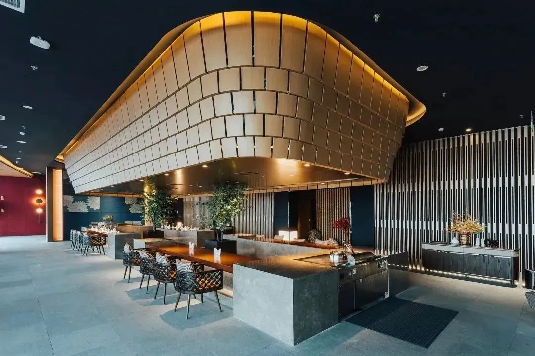 中韓文化客廳三樓主題餐廳匯聚了全市首家高端沉浸式日韓鐵板燒和港式茶餐廳,日式的深遠(yuǎn)幽靜與港式的市井繁華在這里交織呼應(yīng)。庭院風(fēng)格的迎客大廳,運(yùn)用樹、木、石等天然材質(zhì),以現(xiàn)代設(shè)計(jì)手法結(jié)合傳統(tǒng)的庭院式布局,將和式的纖細(xì)與中式的優(yōu)雅完美融合,摒棄一切多余的裝飾,演繹簡素質(zhì)樸的自然之美??腿擞纱寺饺胫黝}餐廳,如品嘗正餐前的開胃小菜,開啟難忘的美食體驗(yàn)之旅。