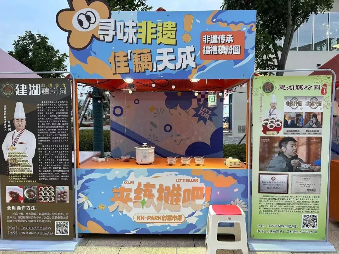 藕粉圓子細嫩彈舌,色澤透明呈深咖啡色,餡心用腌制的糖板油丁加以核桃仁、花生仁等果料混合制成,營養(yǎng)豐富、甜潤爽口,一口下去回味無窮。2號“尋味非遺 佳藕天成”售賣的是建湖特產(chǎn)藕粉圓子,作為鹽城人生活中是一種獨特情懷的美食,藕粉圓子既可作為時令小吃亦可作為筵席佳肴寓意美好,快來嘗嘗鮮吧!