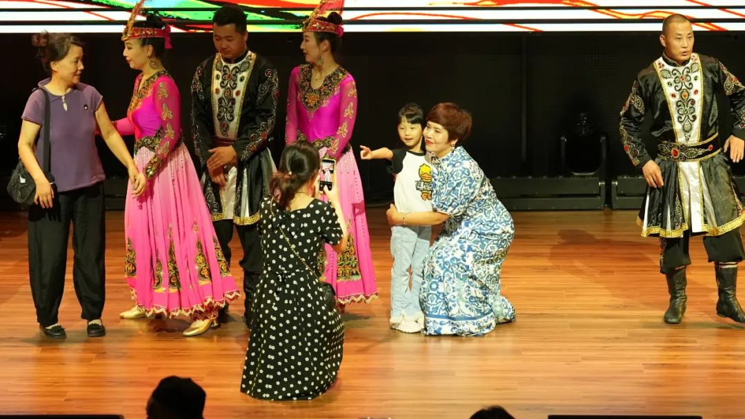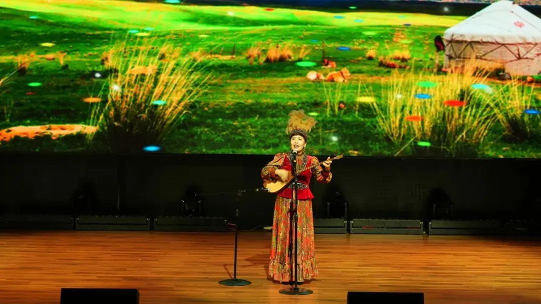 揚(yáng)眉動目、晃頭移頸、拍掌彈指......新疆女子舞蹈《巧姑娘》舞姿優(yōu)美舒展,好似一只只輕快靈巧的蝴蝶,在舞臺上翩翩起舞;冬不拉是哈薩克族人心愛的樂器,一曲自彈自唱的《可麗木愛黛》讓大家仿佛置身草原上淙淙泉水旁,羊群歡騰、駿馬疾行,好不享受;國家級非物質(zhì)文化遺產(chǎn)錫伯民歌清唱著實給大家了一份驚喜,原生態(tài)歌曲《嗚呀拉依耶》氣勢磅礴如萬馬奔騰,令全場屏住呼吸聆聽;透過薩滿歌手深沉熱烈的腔音,不禁聯(lián)想到乾隆年間錫伯族人從白山黑水到伊犁河,越千山、涉萬水、扶老攜幼,橫穿漠北的“大西遷”,那份歷史使命下的堅韌執(zhí)著在民歌中回蕩。