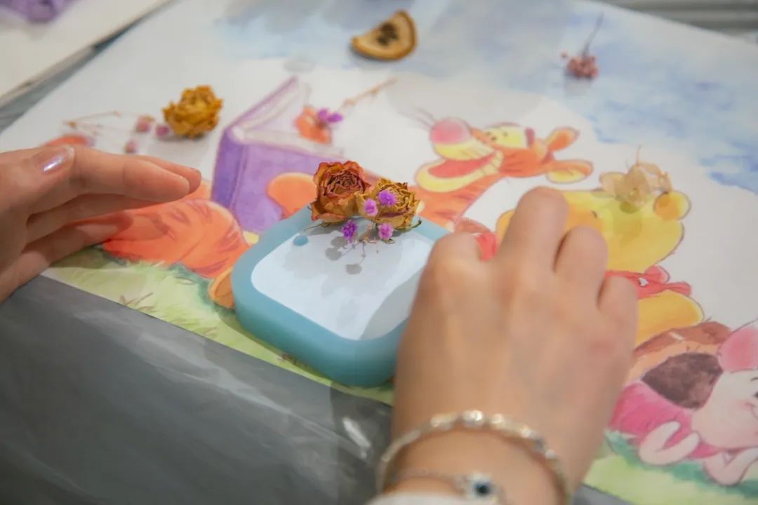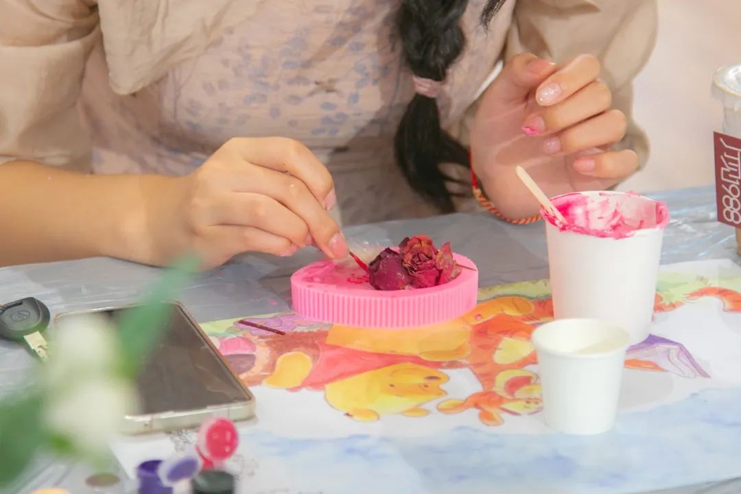 構(gòu)思造型、融化原蠟、滴入精油,再加上各式干花點綴,一個個造型各異、芬芳濃郁的干花香薰掛牌便制作完成了,擁有了一份屬于自己的獨特芬芳。