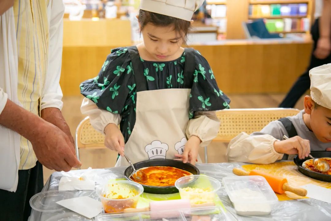 手工披薩DIY活動格外受到歡迎,中韓文化客廳特邀專業(yè)廚師,為大家備好所有的材料并現(xiàn)場示范。小朋友們換上小圍裙,秒變小廚師,在家長和大廚的協(xié)助下,小手生澀地?fù){制面皮,擺放自己喜歡的各種輔料。十幾分鐘后比薩就已經(jīng)陸陸續(xù)續(xù)的烤好,小朋友們迫不及待地與爸爸媽媽分享品嘗親手制作的比薩,現(xiàn)場溫馨甜蜜,每一瞬間都是愛與幸福的美好定格。