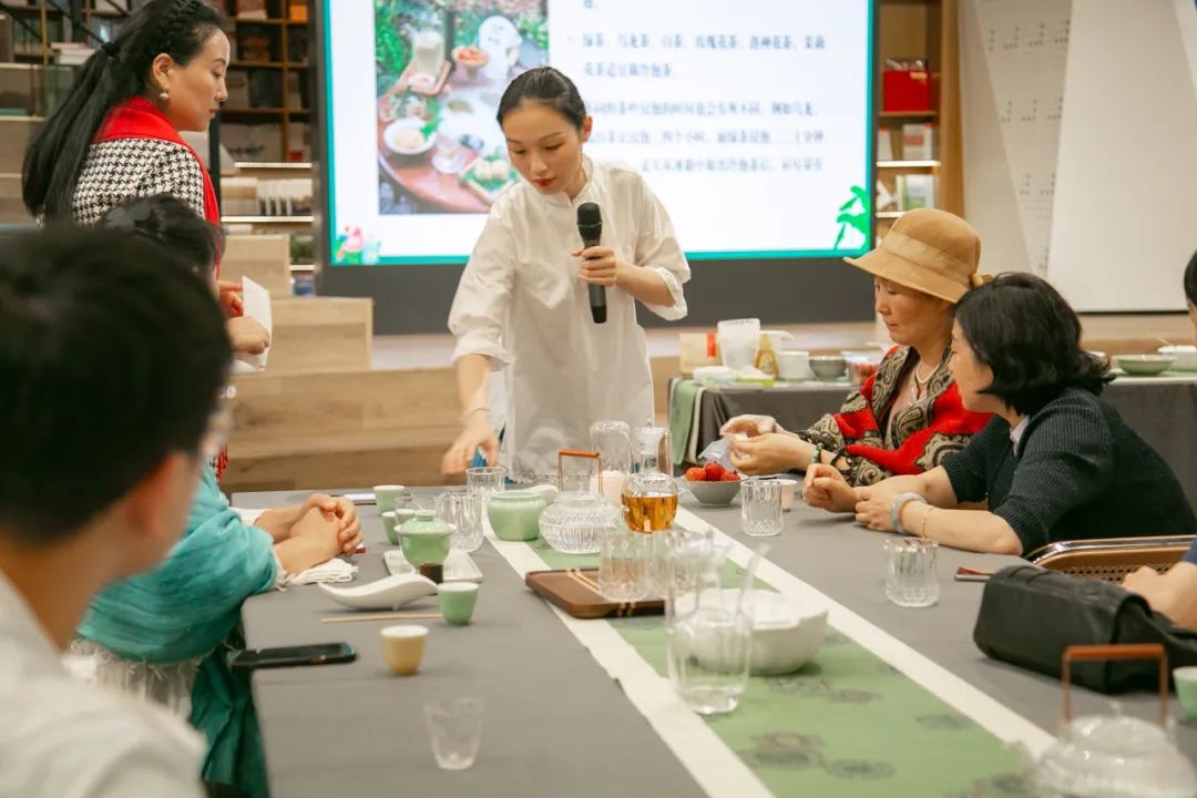 茶藝?yán)蠋煘榇蠹規(guī)碛嘘P(guān)夏日飲茶知識,對茶葉的挑選、烹茶的方法 、泡茶的技巧逐一講解。在老師的指導(dǎo)下,茶客們嘗試沖泡、倒茶、品飲……現(xiàn)場彌漫著淡淡的茶香 ,清透涼爽的冷泡茶沁潤心田,化解了夏季的酷熱。