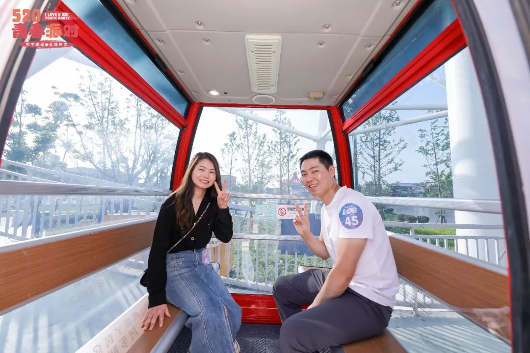 明媚的陽(yáng)光下,摩天輪載著滿滿的期待旋轉(zhuǎn)向上,抬頭就是遼闊的天空,低眼就是草坪、湖景。小小轎廂內(nèi)愛意滋生,空中邂逅的愛情,值得一輩子紀(jì)念。
