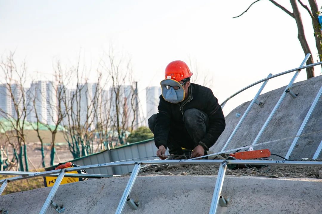 走進(jìn)項(xiàng)目工程現(xiàn)場(chǎng),機(jī)聲轟鳴、人頭攢動(dòng)。連日來(lái),700余名建設(shè)者分布在沿湖四周各司其職:施工人員奮斗在崗,捆綁鋼筋、堆砌地磚、焊接部件……一幅搶時(shí)間、爭(zhēng)速度、抓質(zhì)量的搶工會(huì)戰(zhàn)、大干快干的火熱圖景徐徐展開。