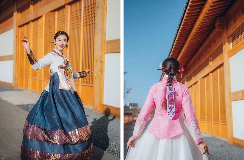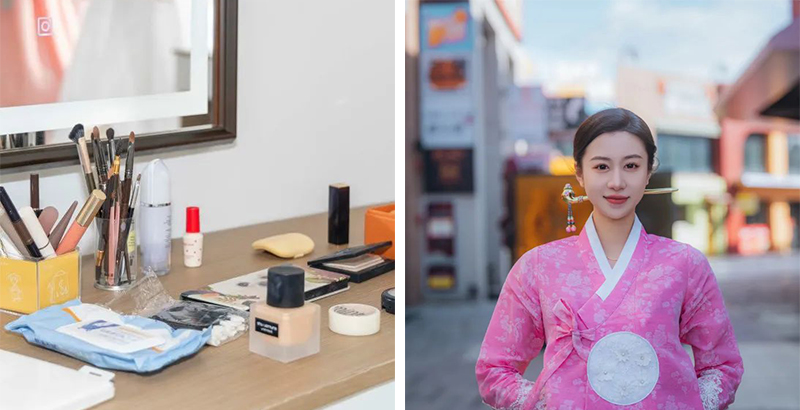 服飾之美承載著文化傳承與交流。當(dāng)然, “韓風(fēng)鹽韻”的妝拍魅力也離不開服飾的加持。在“拾光”妝拍館,有近百套精美服飾供你挑選,或飄逸風(fēng)雅,或華美絢麗,或內(nèi)斂端莊,男女老少皆能找到適合自己的那套服裝。