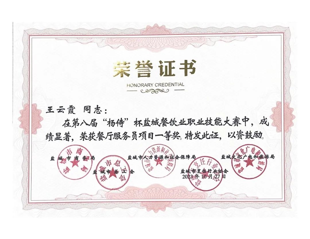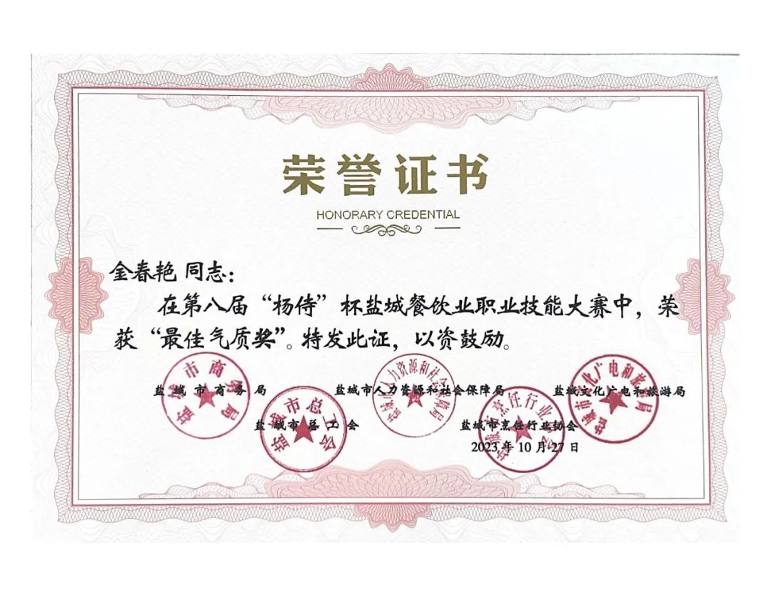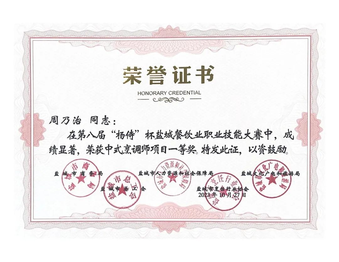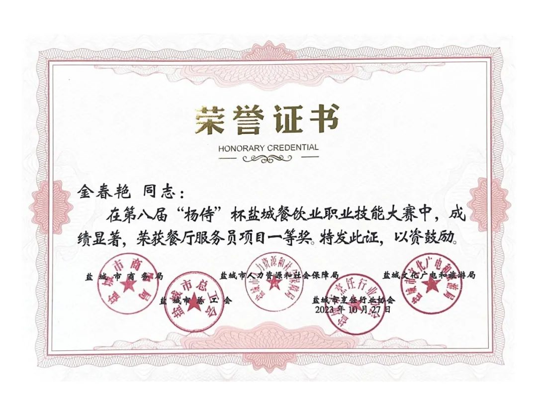 近日,由鹽城市商務(wù)局、鹽城市人力資源和社會(huì)保障局、鹽城市文化廣電和旅游局、鹽城市總工會(huì)、鹽城市烹飪行業(yè)協(xié)會(huì)聯(lián)合主辦的第八屆楊侍生態(tài)美食節(jié)暨“楊侍”杯鹽城餐飲業(yè)職業(yè)技能大賽頒獎(jiǎng)典禮在中國(guó)最美鄉(xiāng)村——郭猛鎮(zhèn)楊侍村落下帷幕,集團(tuán)下屬公司世紀(jì)城市酒店以精湛業(yè)務(wù)技能分獲1個(gè)團(tuán)體一等獎(jiǎng)、1個(gè)“優(yōu)秀組織獎(jiǎng)”、3項(xiàng)榮譽(yù)稱號(hào)和8項(xiàng)個(gè)人單項(xiàng)獎(jiǎng),綜合成績(jī)?cè)賱?chuàng)新高。