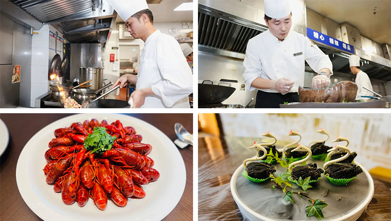 世紀(jì)城市酒店酒店餐飲以精品粵菜和融合淮揚(yáng)菜為主打,傾力打造“無精廚房、炭火慢燉、綠色生態(tài)”三大餐飲品牌特色,引進(jìn)上海首席公館粵菜廚師團(tuán)隊(duì),從菜肴研發(fā)到出品均體現(xiàn)了高于鹽城同行的實(shí)力和水平。在這里,每一道菜品,都擁有精致的擺盤和讓人驚艷的味道。傳統(tǒng)技藝爐火純青,酒店力求把每一道引進(jìn)的外地菜做得夠“土”、夠地道,定期組織團(tuán)隊(duì)赴外地學(xué)習(xí)本土制作方法,引進(jìn)當(dāng)?shù)卦牧?,讓客人真?ldquo;賓至如歸”。因地制宜推陳出新,酒店后廚積極創(chuàng)新菜品,切實(shí)保證菜單既要出彩出新,又有時(shí)令特色。鹽城名菜砂鍋全鴨、春秋的當(dāng)季野菜、夏季的冰鎮(zhèn)龍蝦,元宵節(jié)的雨花石湯圓……皆是后廚團(tuán)隊(duì)不斷探索、鉆研、創(chuàng)新的成果。周全服務(wù)用心用情,酒店還提供餐飲管家服務(wù),在用餐客人到店和離開時(shí)負(fù)責(zé)接送、帶客,悉心記住每一位客人的需求,并在用餐后回訪以獲取客人的真實(shí)反饋,為消費(fèi)者提供全過程的精細(xì)化服務(wù)。