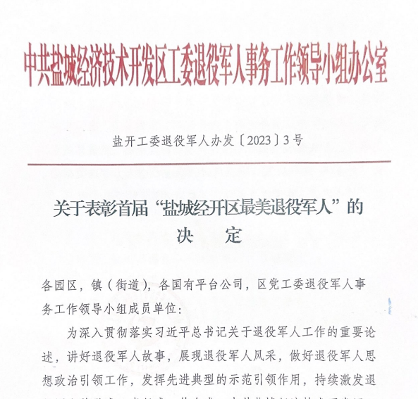 退役不褪色 整裝再出發(fā)——走近集團(tuán)首屆“鹽城經(jīng)開區(qū)最美退役軍人”