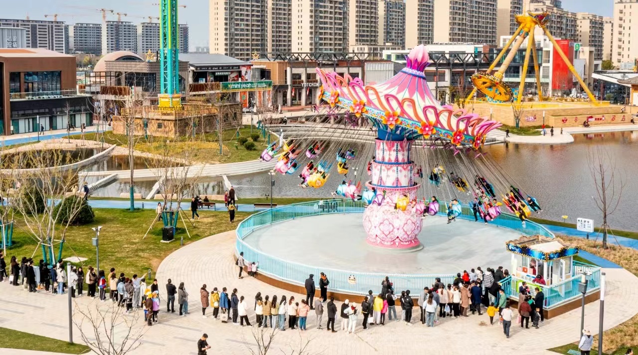 走進(jìn)街區(qū),摩天輪、海盜船等游樂設(shè)施前都排起了長(zhǎng)隊(duì),各類特色餐館、精品小吃攤前也是圍滿了慕名而來(lái)的游客。大家或散步閑聊,或拍照打卡,在春光里享受著美好休閑時(shí)光。