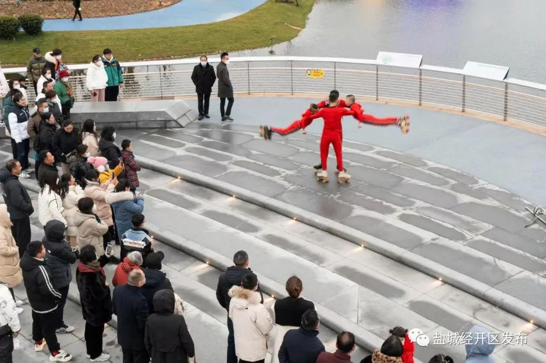 舞龍巡游、雜技表演等各色民俗演出年味兒十足,吸引廣大市民游客駐足觀看,打卡拍照。
