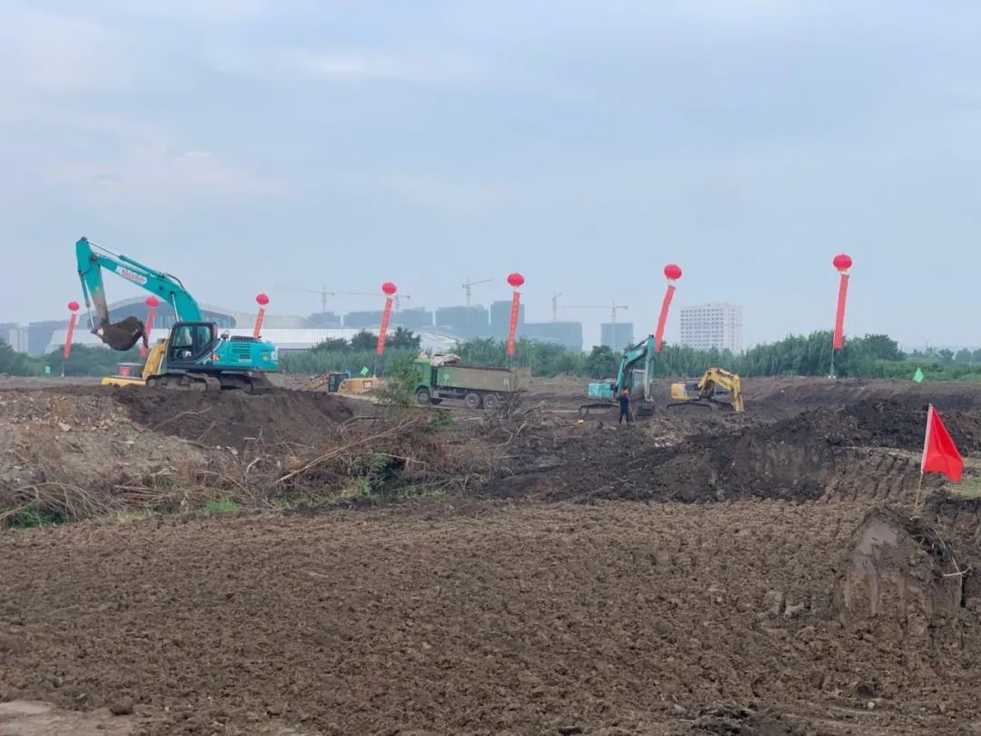 昨天,在中韓文化廣場(chǎng)中央水體開(kāi)挖現(xiàn)場(chǎng),一臺(tái)臺(tái)挖掘機(jī)巨臂揮舞,一輛輛運(yùn)土車往來(lái)不息,一片繁忙景象;走進(jìn)工程現(xiàn)場(chǎng)抵近觀察,彩旗獵獵,機(jī)械轟鳴,搶工會(huì)戰(zhàn)的熱潮一浪高過(guò)一浪。截至目前,已完成土方開(kāi)挖48萬(wàn)方,預(yù)計(jì)將于9月底基本完成水體開(kāi)挖工程。