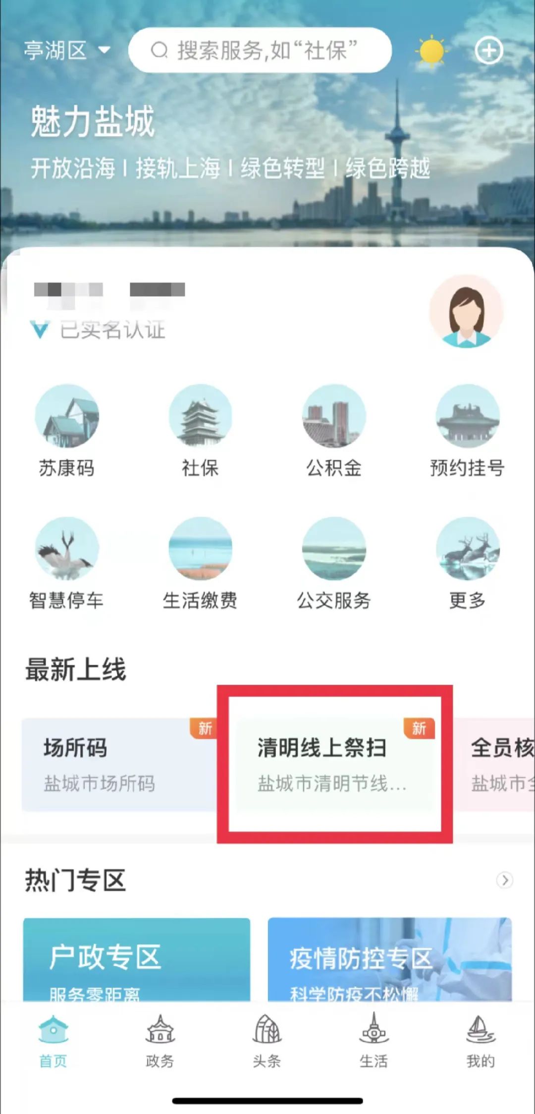 1、打開(kāi)“我的鹽城”APP—“清明線上祭掃”模塊