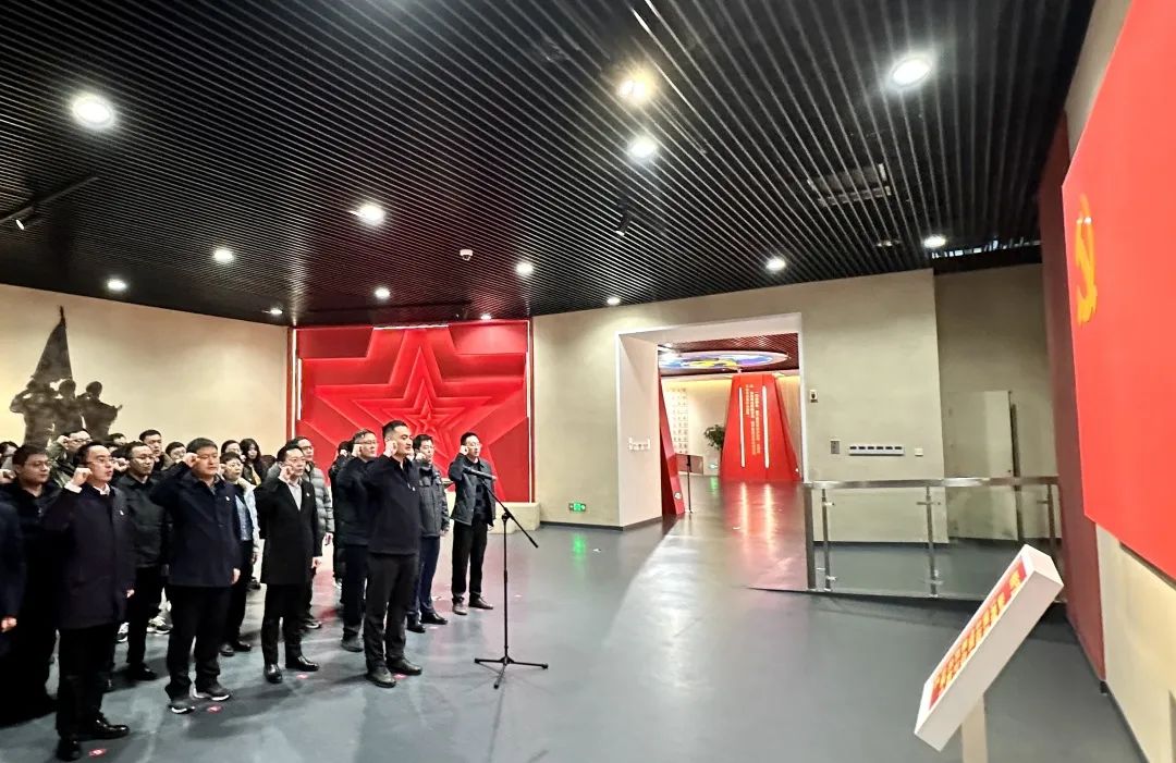 在傳承廳,面對著鮮紅的中國共產(chǎn)黨黨旗,王建旭同志帶領(lǐng)大家舉起右拳鄭重宣誓,鏗鏘誓言響徹大廳。大家一致表示,通過集體學習更加真切地感受到新四軍浴血奮戰(zhàn)的歷史,重溫入黨誓詞,就是要時刻銘記中國共產(chǎn)黨的革命歷史,始終牢記初心使命,深刻認識到紅色政權(quán)來之不易,深刻認識到堅持黨的領(lǐng)導是奪取一切勝利的最根本保證。要把捍衛(wèi)“兩個確立”作為最根本的政治遵循,學思踐悟習近平新時代中國特色社會主義思想,增強“四個意識”,堅定“四個自信”,做到“兩個維護”。深刻領(lǐng)悟習近平總書記關(guān)于“民心向背決定著歷史的選擇”的重要論斷,把以人民為中心的發(fā)展思想貫穿集團各項工作的全過程、各方面,在推進中國式現(xiàn)代化鹽城經(jīng)開區(qū)新實踐的征程中彰顯新?lián)敗⒄宫F(xiàn)新作為、干出新業(yè)績,切實將主題教育工作成效轉(zhuǎn)化為高質(zhì)量發(fā)展質(zhì)效,譜寫集團高質(zhì)量發(fā)展新篇章。