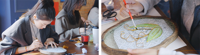 “這個(gè)曲線好難固定呀!”“這個(gè)需要巧勁和耐心,你用鑷子引導(dǎo)試試。”活動(dòng)中大家認(rèn)真聆聽制作方法,興致盎然地討論制作心得。經(jīng)過掐絲、琺瑯彩填充和燒制,看似普通的金絲奇跡般地構(gòu)成了一個(gè)又一個(gè)精巧細(xì)致的圖案,散發(fā)出立體、流暢的美感。一縷金絲流轉(zhuǎn),掐出指尖上的非遺之美,大家在專注、歡樂的時(shí)光中深深感受到了中國(guó)傳統(tǒng)非遺文化的魅力。