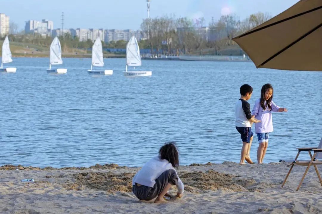 林蔭小道,空曠草坪,熱鬧的沙灘以及不遠(yuǎn)處廣闊的一線湖景。晨起跑步騎行放風(fēng)箏,傍晚野餐露營(yíng)吹吹風(fēng),來(lái)到這里就會(huì)發(fā)現(xiàn),時(shí)光都變得溫柔起來(lái)。