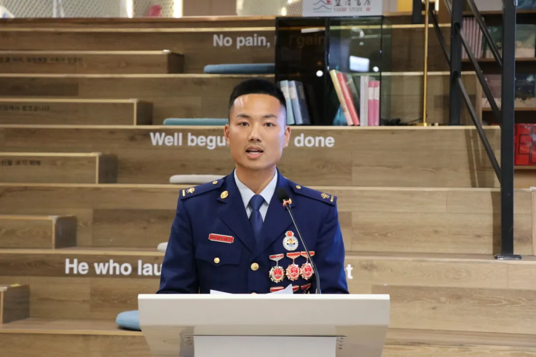 活動邀請了全國青年崗位能手、鹽城市消防救援支隊西環(huán)路特勤站攻堅班班長崔慕、鹽城市消防救援支隊亭湖區(qū)毓龍路站戰(zhàn)斗一班班長徐騰飛講主題團課,在場集團青年共同學習他們刻苦鉆研、英勇無畏、忠誠履職的奮斗事跡,真切感受“火焰藍”永遠在黨和人民需要時沖鋒在前的果敢與擔當。