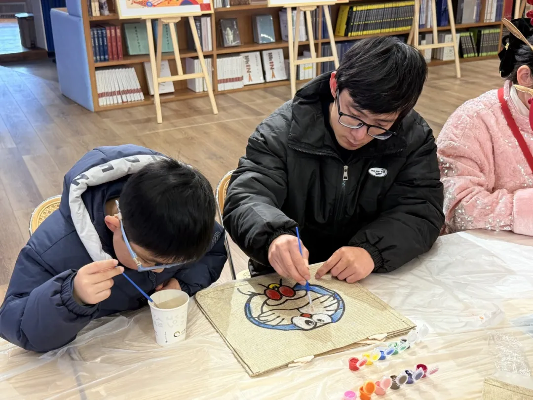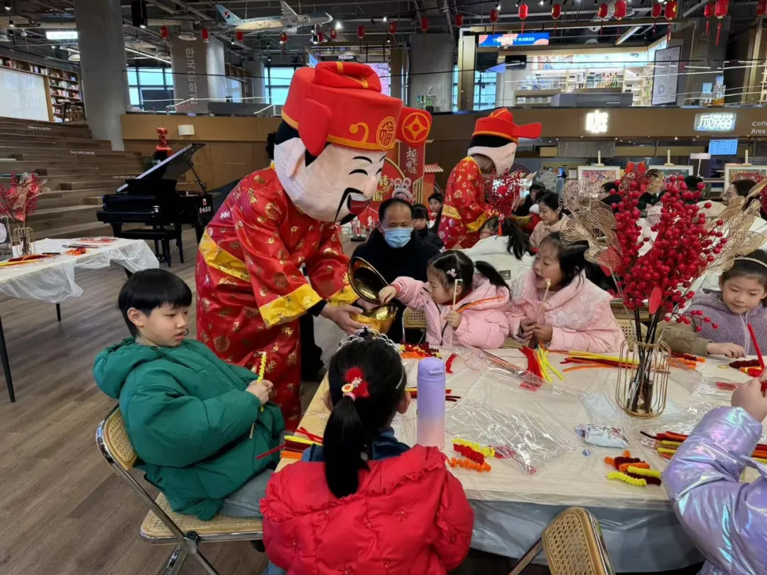 節(jié)日期間,中韓文化客廳開展了以“非遺煥新韻 中韓共年味”為主題的非遺手作賀新春系列活動(dòng),為市民游客奉上非遺“饕餮盛宴”。手作窗花拓印、非遺燒箔團(tuán)扇、非遺紙漿畫等傳統(tǒng)非遺活動(dòng),孩子們?cè)诩议L的陪伴下學(xué)非遺、做手作,為孩子們打開探索“非遺”之門。同時(shí),在春節(jié)的喜慶氛圍中,市民不僅享受著傳統(tǒng)文化的熏陶,還熱衷于品味書香,這里也成為了親子家庭的另一片天地,許多市民選擇在這里與家人一同沉浸于書香之中,享受閱讀的樂趣。