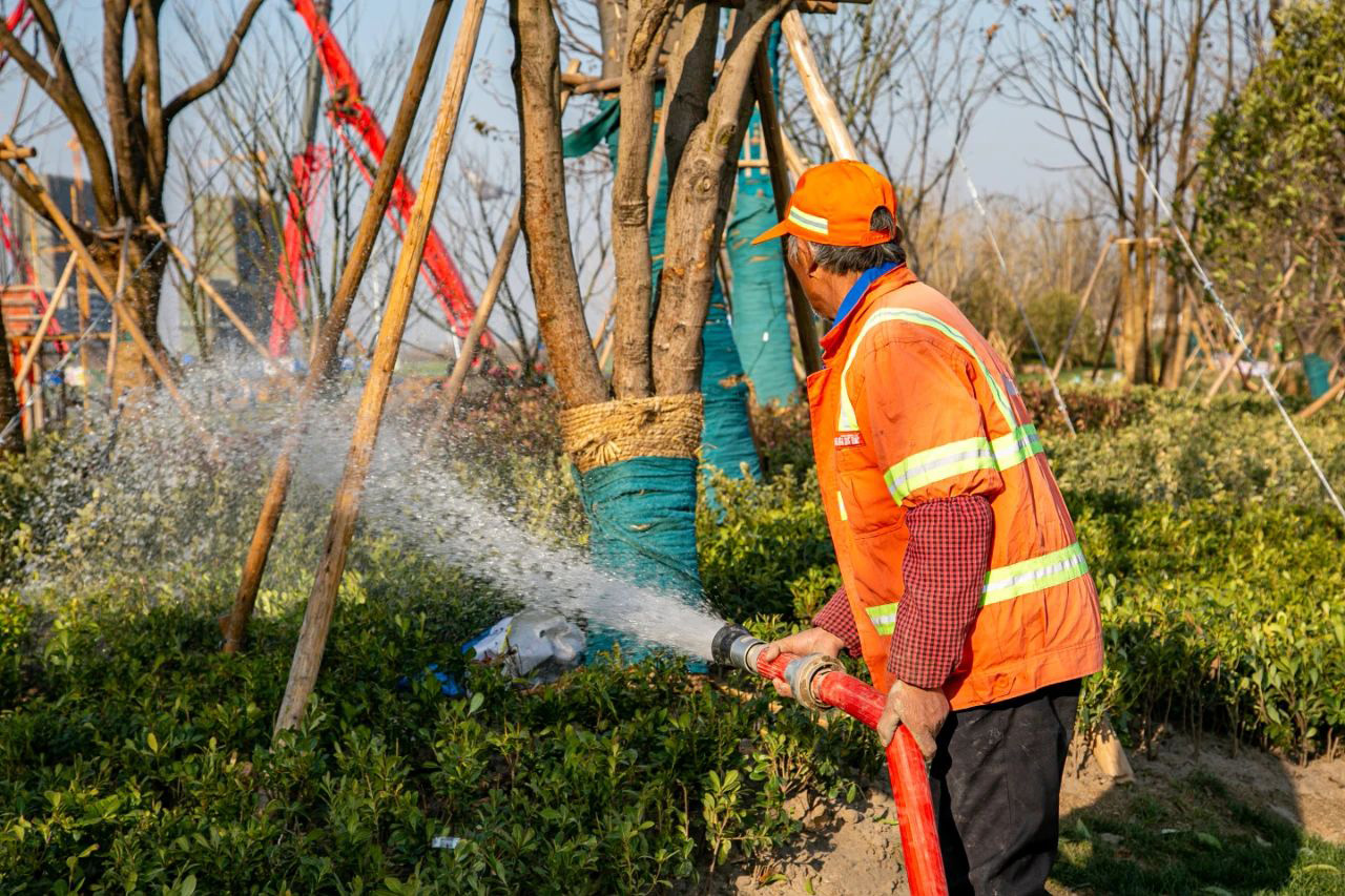 圍繞今年5月1日建成開(kāi)園,施工單位緊扣時(shí)間節(jié)點(diǎn)、打足人力機(jī)械,建設(shè)工人由原來(lái)的400余人增加至700余人,項(xiàng)目進(jìn)度大幅度提升。目前中韓文化廣場(chǎng)四區(qū)域房建主體已完成施工,正在進(jìn)行幕墻安裝施工,D區(qū)房建區(qū)域景觀綠化開(kāi)始進(jìn)入地形整理和綠化種植部分,項(xiàng)目綠化景觀施工和園路鋪裝進(jìn)入收尾階段。