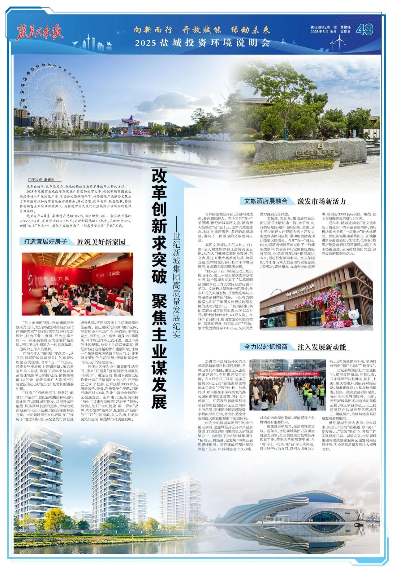 《鹽阜大眾報》特刊聚焦——世紀新城集團:改革創(chuàng)新求突破 聚焦主業(yè)謀發(fā)展