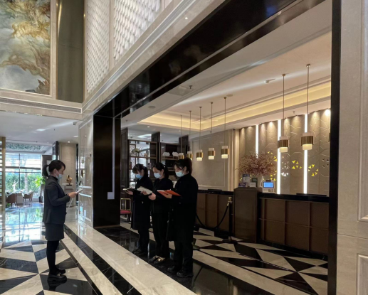 由于工作嚴(yán)謹(jǐn)細(xì)致、一絲不茍,2021年她開始負(fù)責(zé)酒店的疫情防控工作。初次接觸這份工作的她立刻匯總了酒店全體員工的核酸檢測記錄、疫苗接種記錄、酒店員工自檢登記等相關(guān)表格。在新冠疫苗剛剛推出之際,為了消除員工的顧慮,她與酒店管理層帶頭接種疫苗,同時每月根據(jù)接種進(jìn)展向相關(guān)人員發(fā)送通知,不厭其煩地督促大家盡快完成接種工作。此外,為確保酒店安全生產(chǎn),她主動協(xié)調(diào)區(qū)綜合執(zhí)法行政局,為酒店員工進(jìn)行每月一次的核酸檢測。同事眼中的她總是十分嚴(yán)肅、“較真”,一次檢查中,她發(fā)現(xiàn)后廚一名廚師沒有正確佩戴口罩。為了糾正這個問題,自此她開始通過后廚的監(jiān)控大屏來實(shí)時監(jiān)督,后廚的同事們總是笑著開玩笑說:快把口罩戴好,束經(jīng)理看著呢!
